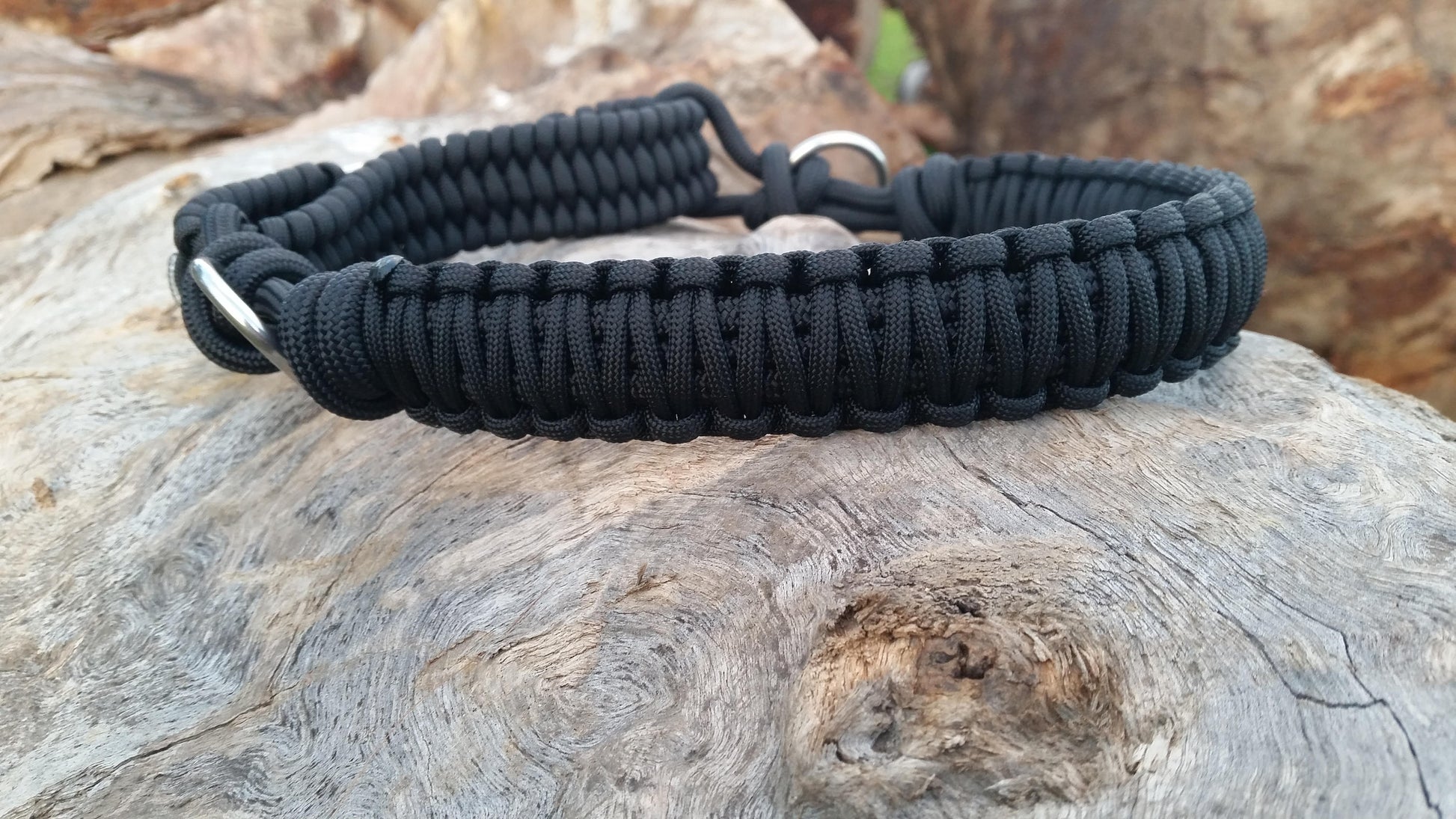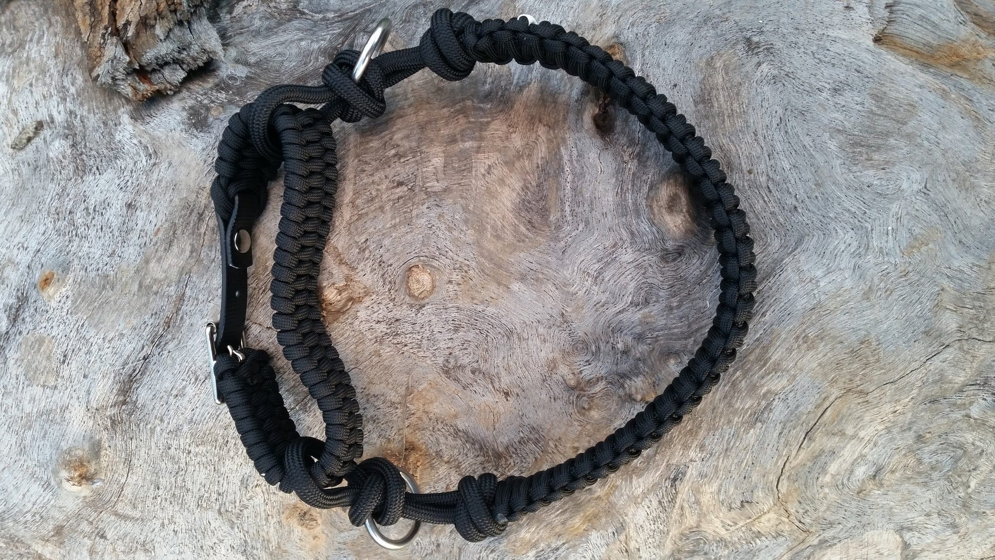 Made from a long lasting and durable Paramax core, braided with 550 paracord over the nose and a soft weave with adjustable Biothane chinstrap for size adjustablity to ensure a snug and proper fit.